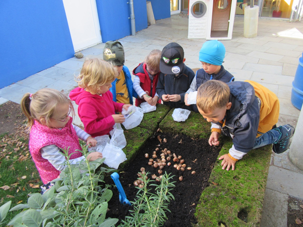 Die Klassen 1 und 4 mit ihren Klassenlehrerinnen Frau Job und Frau Eppler pflanzten am vergangenen Freitag rund um das Schulhaus die Krokuszwiebeln ein. Alle Schüler/innen und Lehrer/innen freuen sich, wenn es im Frühjahr dann rund um die Schule blüht und somit etwas für die Bienen und Insekten getan werden konnte.
