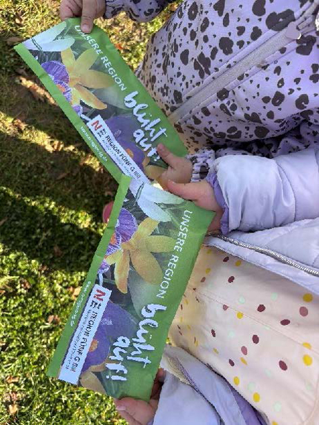 Die N!-Region 5G besteht aus den Gemeinden Aldingen, Frittlingen und Denkingen im Landkreis Tuttlingen und Deißlingen und Wellendingen im Landkreis Rottweil. Wie in den vergangenen Jahren wird auch für das Frühjahr 2024 die Aktion „Frühlingsblumen“ fortgesetzt. Über die Gärtnerei Zink in Wellendingen werden in diesem Jahre Zwiebeln von Traubenhyazinthen bezogen, welche dann von der Lebenshilfe Rottweil in Einzelpakete verpackt werden.