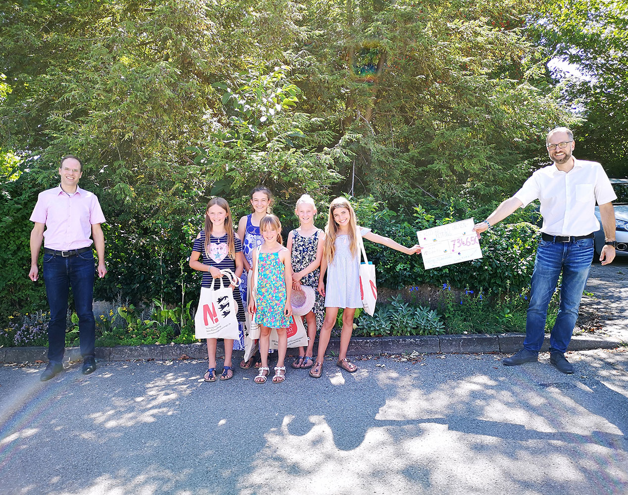 Scheckübergabe der Bienen-Aktion von fünf Mädchen aus Deißlingen